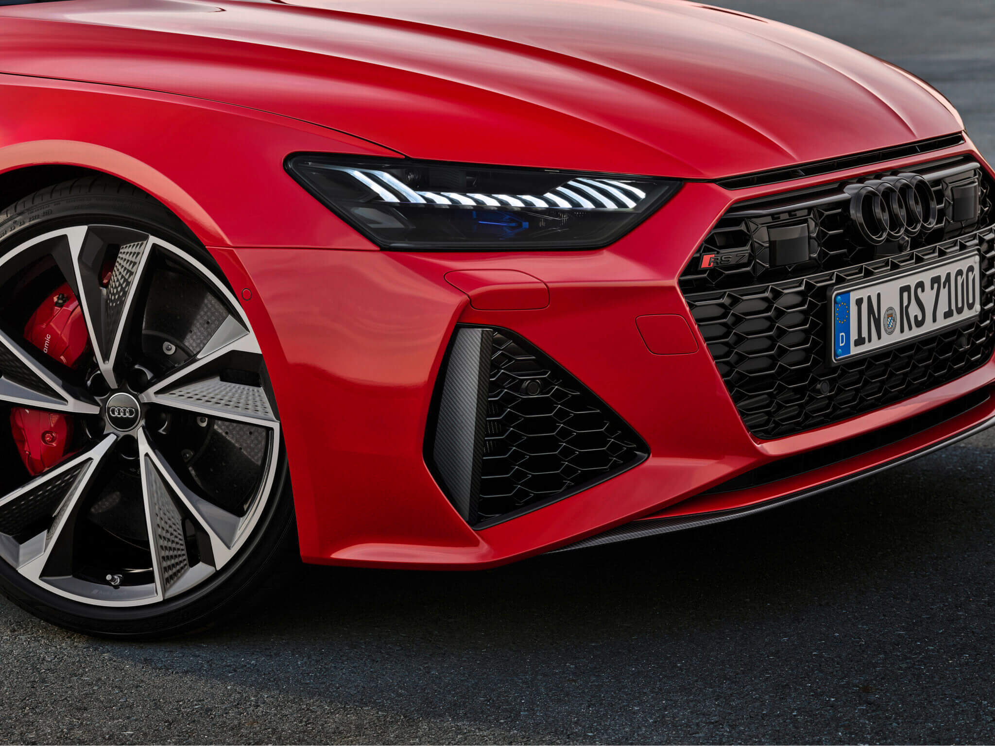 The RS7 stretches 1.6 inches wider than the standard A7, hunkered down on massive 21-inch wheels as standard (22-inches are optional), giving a much more aggressive stance. Other styling tweaks include the same horizontal slit above the front grille, inspired by the R8 supercar.