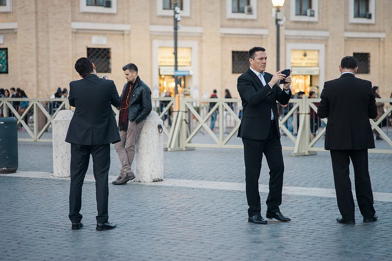 The latest shot of the guys in the suits is really nice. Its got your signature tones but i particularly like the juxtaposition of the way all the guys are turned and messing on their phones, especially while the guy not in a suit but still on a phone is just chilling out.