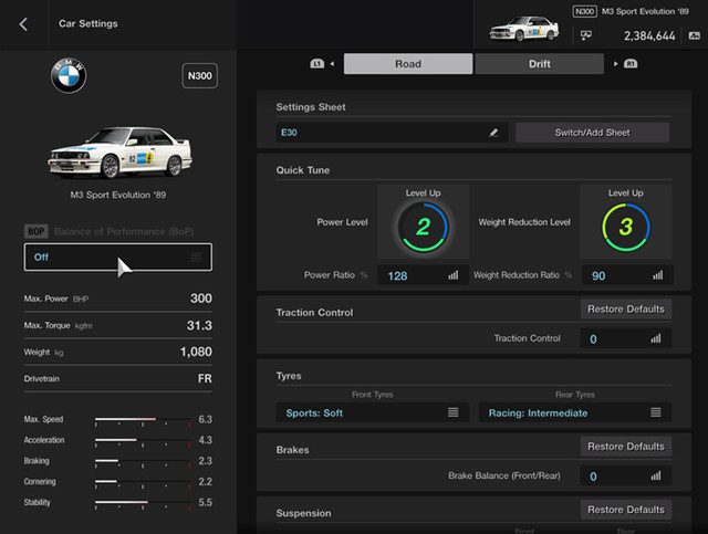 Moderate power, grippy front and grippy rear, but the rear loose enough to have fun, especially in 2nd and 3rd gear. I know pretty much nothing about LSD tuning, but I hope it's ok.