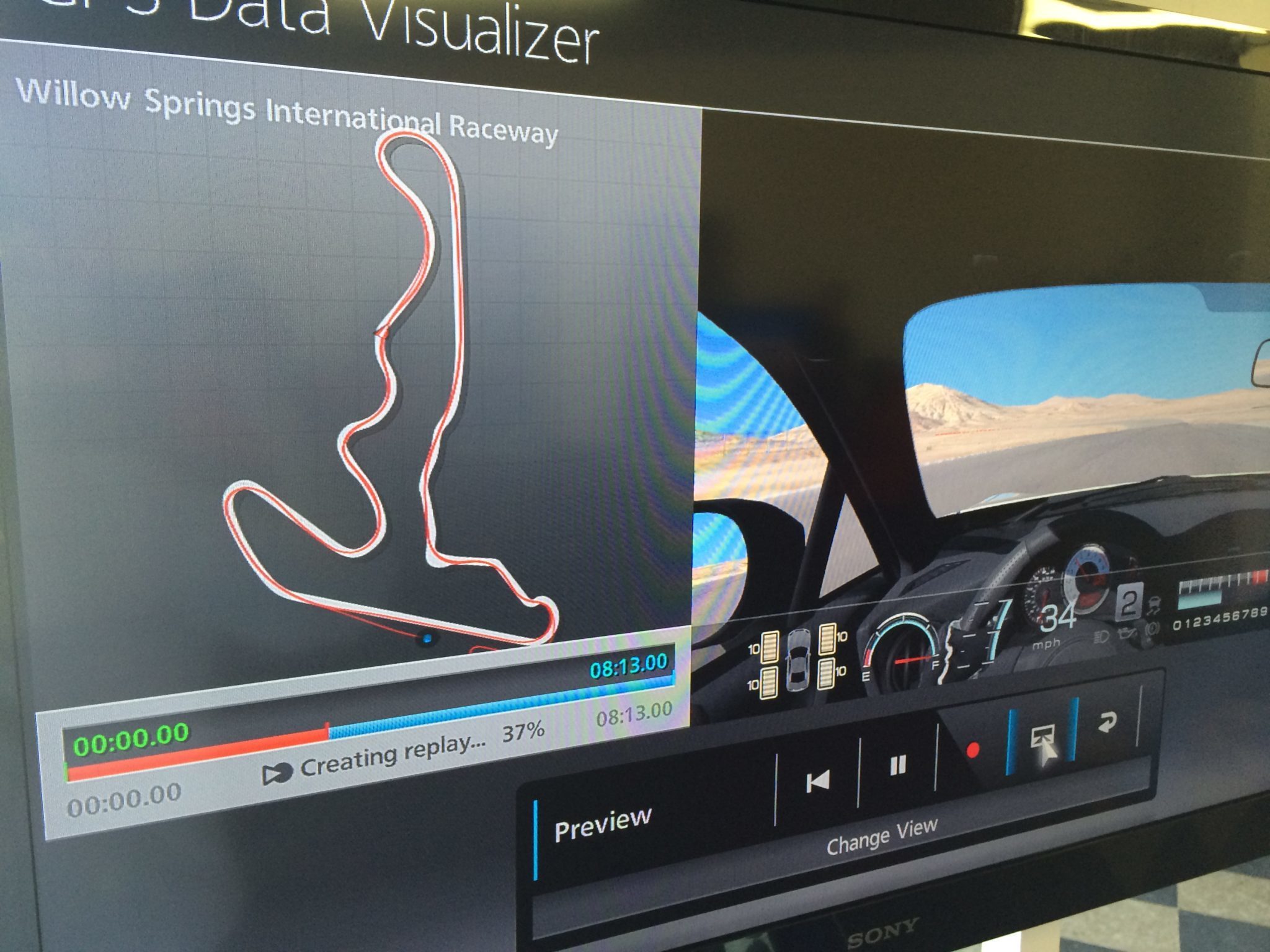 Back inside, a Polyphony Digital engineer who’s been working exclusively on the Data Logger downloaded the data back into a PlayStation 3 running a special build of GT6. (As anyone who closely follows Gran Turismo knows, it’s quite rare for Polyphony Digital employees to be present at press events, as these are typically handled by local Sony Computer Entertainment staff. For myself, it was a treat to interact with someone within the company, and I found him to be as kind, professional, and passionate about his work as Kazunori Yamauchi himself.)