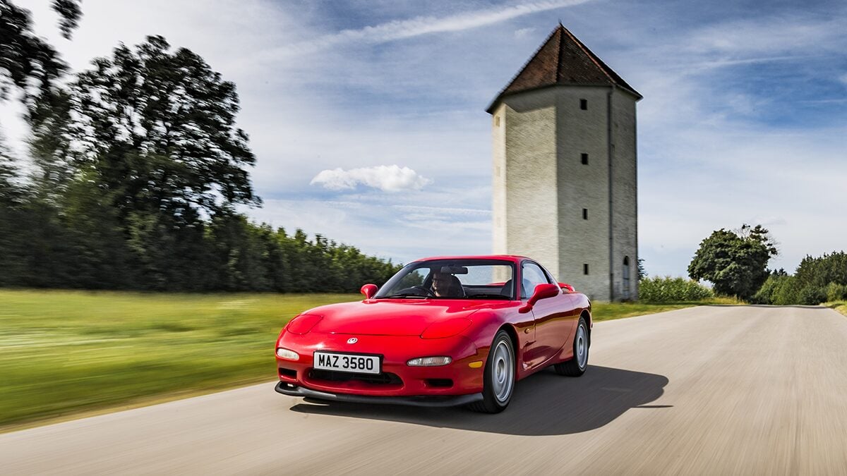The shapes of the other two cars are more obvious but there are even more possibilities beneath. On the right is clearly an FD-generation Mazda RX-7, but this car has been available in so many variations — one of which is already in the game — that a positive identification through the covers is tricky. We reckon that the clean lines and small rear wing hint at the original RX-7 Type R that appeared in every numbered GT game other than GT3 which lacked a “Series 6” version of the FD.
