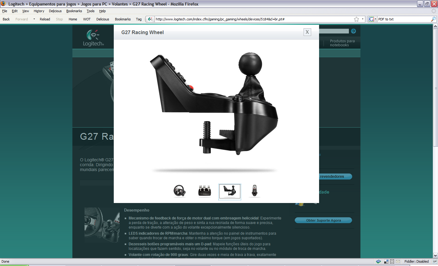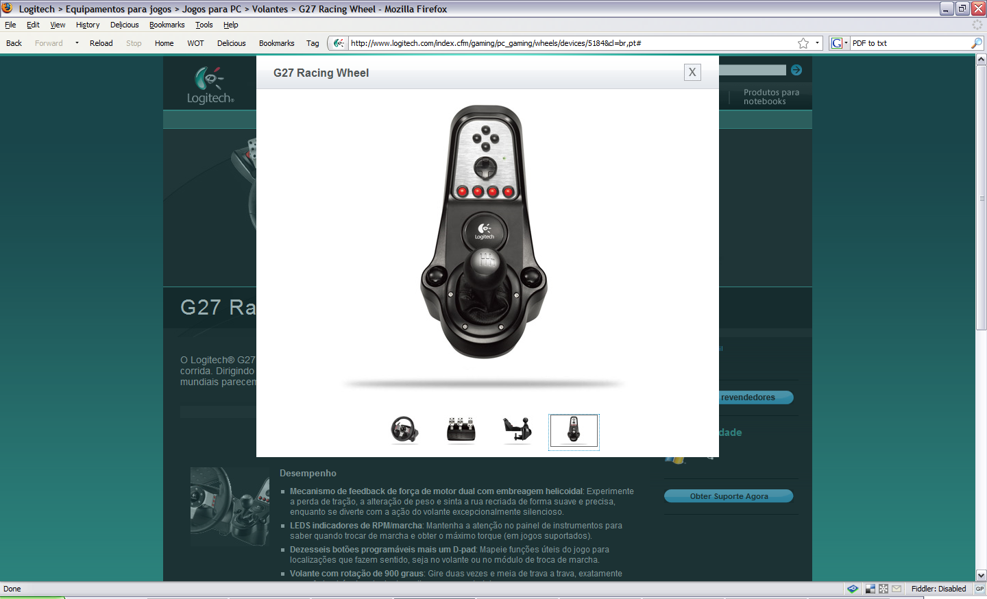 GTPlanet independently verified leaked shots of the new Logitech G27 a while back, but many of you still weren’t convinced. Earlier this week, however, a VirtualR reader just happened to stumble upon the new wheel at Logitech’s own web site. He wisely nabbed screenshots while the pages and images were still online to verify his discovery. Although there doesn’t appear to be any new technical details revealed in the Portugese product description visible in the screenshots, it confirms the exterior design (including the six wheel buttons, thicker wheel, shift light indicators, and the suspiciously absent shift mode selector switch). It’s becoming more and more likely, however, that the G27 is simply an evolutionary update to the G25, as opposed to a radical new design with lots of additional features. We’ll keep you updated, of course, as more information is released.